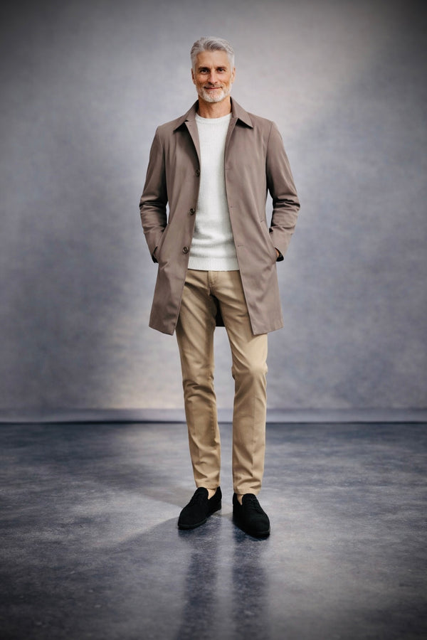 Det er den frakke, du tager på om morgenen – uanset om kalenderen siger møde i byen eller middag i weekenden. Én investering. To udtryk. Ingen kompromiser.
